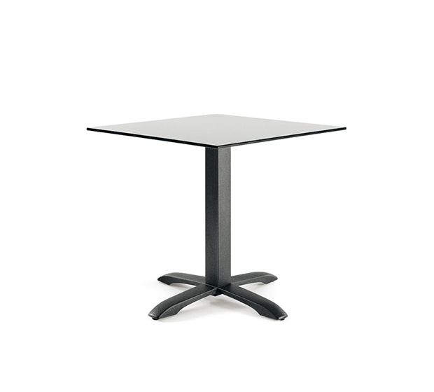 Base de table en fonte à colonne centrale carrée. Structure à 4 pieds polis, brossés ou peints. Hauteur standard. Sous-pattes ajustables incluses.