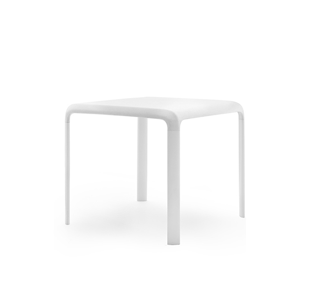 Table à 4 pattes. Plateau en polypropylène et pattes en aluminium. Hauteur Standard.