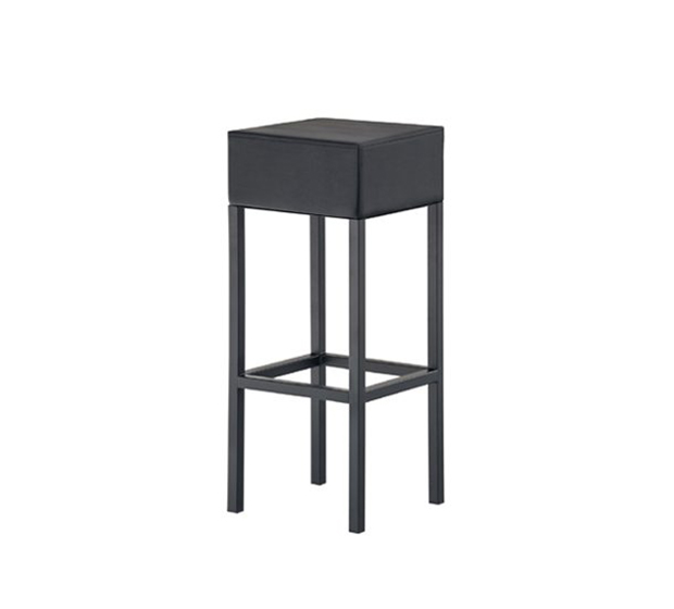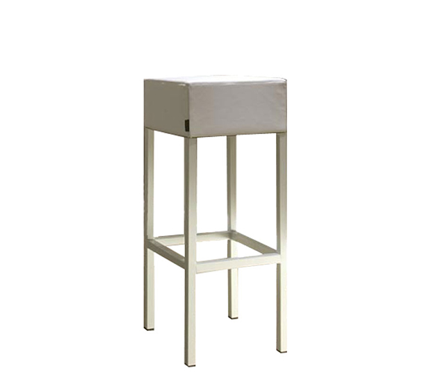 Tabouret hauteur bar. Assise rembourrée, structure en acier peint.