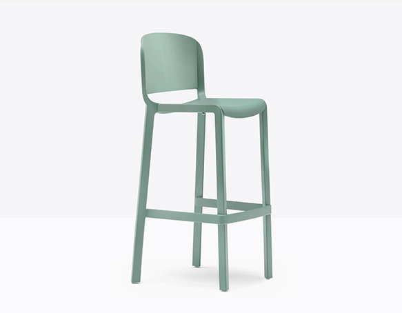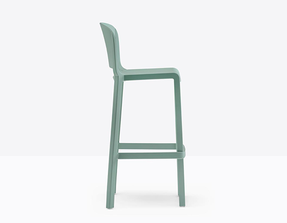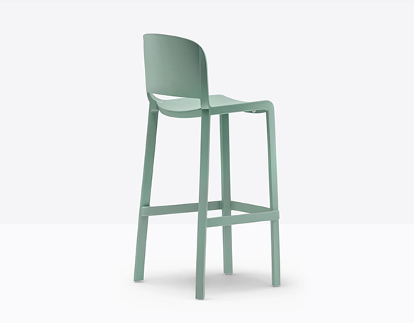 Tabouret avec dossier, hauteur bar. Fabriqué entièrement en polypropylène renforcé de fibres de verre. Adapté à l’usage extérieur.