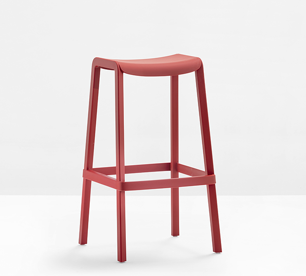 Tabouret hauteur bar. Empilable. Entièrement faite de polypropylène. Adapté à l’usage extérieur.