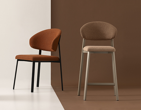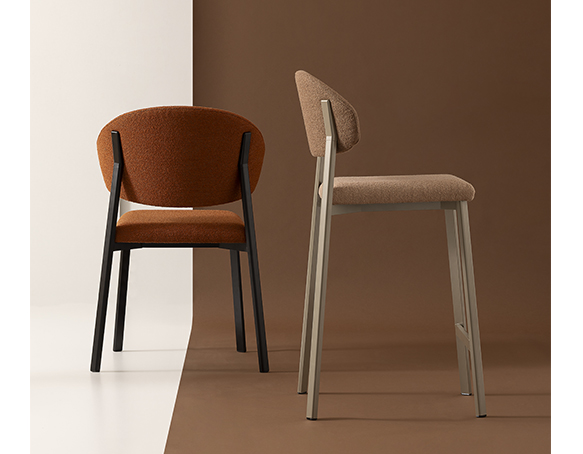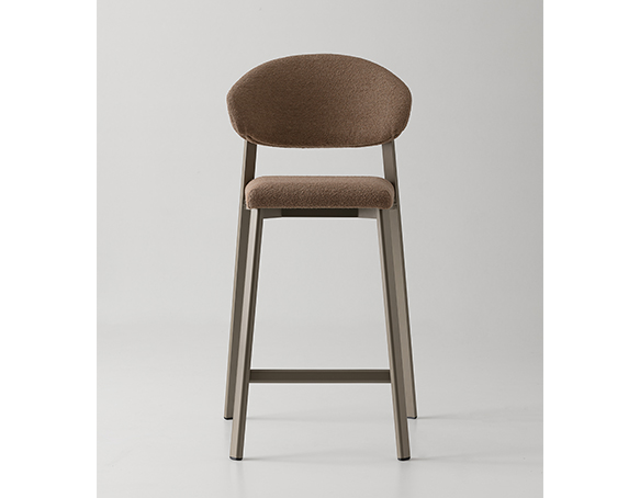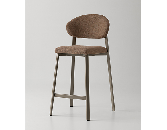 Tabouret hauteur comptoir. Structure en acier peint. Assise et dossier rembourrés. Fabriqué en Italie.