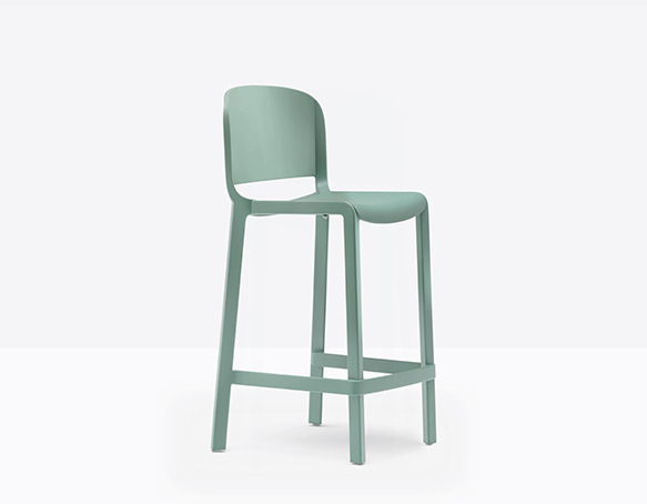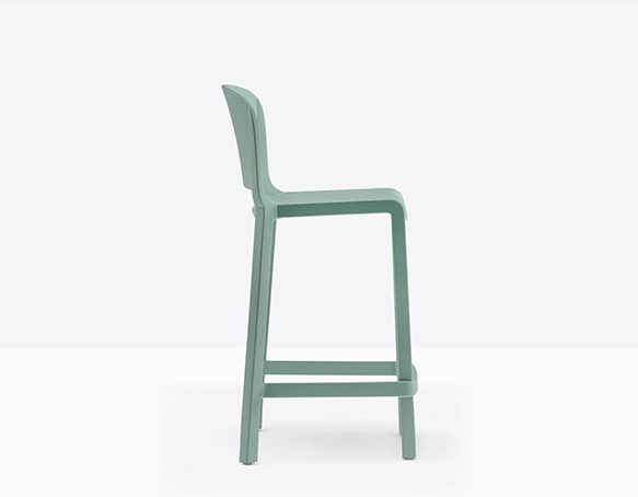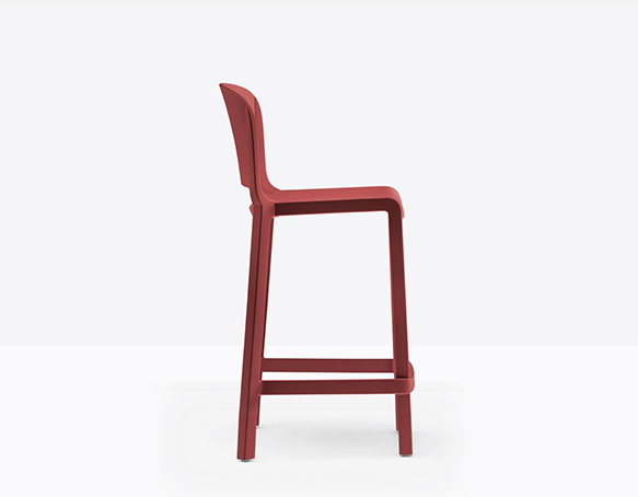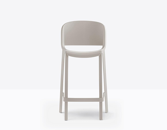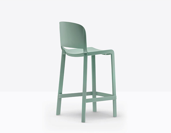 Tabouret avec dossier, hauteur comptoir. Fabriqué entièrement en polypropylène renforcé de fibres de verre. Adapté à l’usage extérieur.