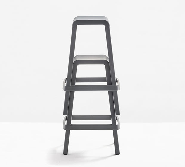 Tabouret hauteur comptoir. Empilable. Entièrement faite de polypropylène. Adapté à l’usage extérieur.
