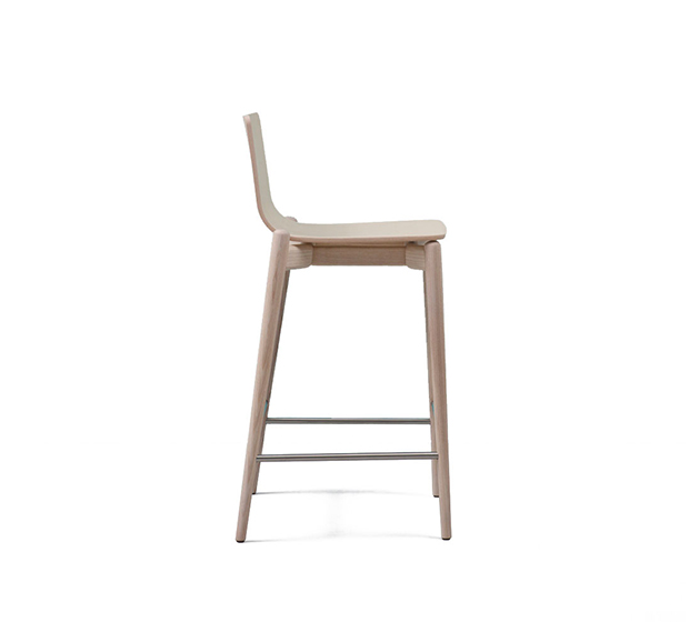 Tabouret hauteur comptoir. Assise et dossier en bois, structure en frêne massif.