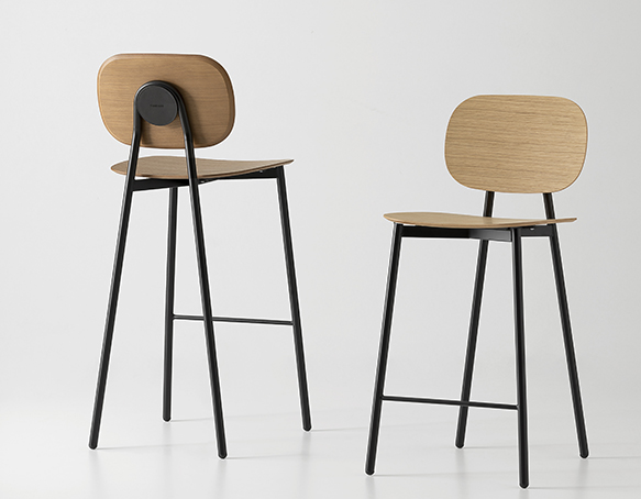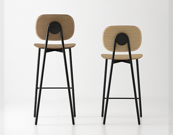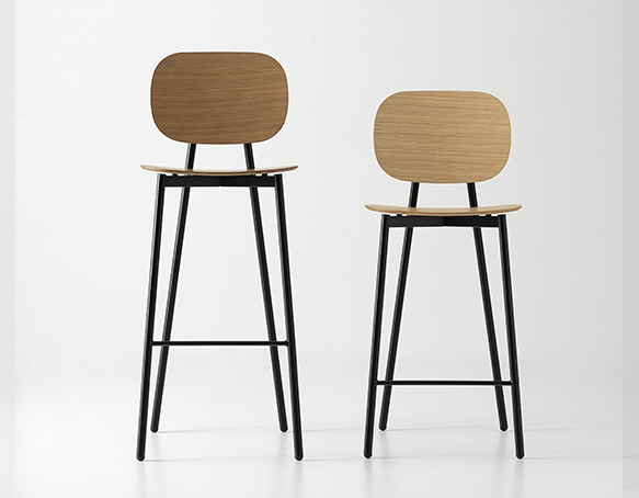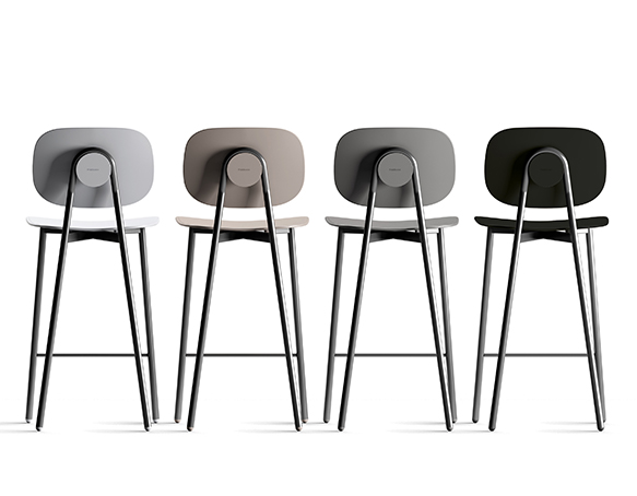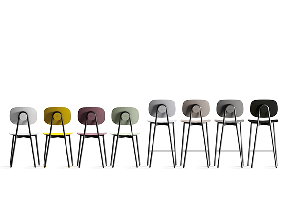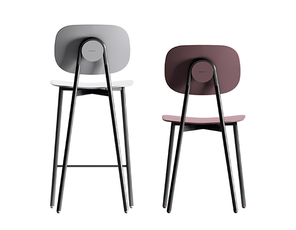 Tabouret disponible en deux hauteurs: comptoir ou bar. Structure tubulaire en acier peint. Assise et dossier disponible en polypropylène renforcé de fibre de verre, en contreplaqué mélaminé, bois plaqué, ou rembourrés. Aussi disponible avec le dossier en polypropylène et l’assise coussinée. Fabriqué en Italie.