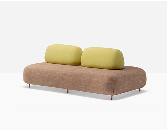 Sectional sofa suitable for outdoor use. Upholstered seat with polyurethane foam. Upholstered mobile backrest with polyurethane foam. Seat and backrest are protected by a water-resistant cover and upholstered in fabric suitable for outdoor use. Aluminium legs.